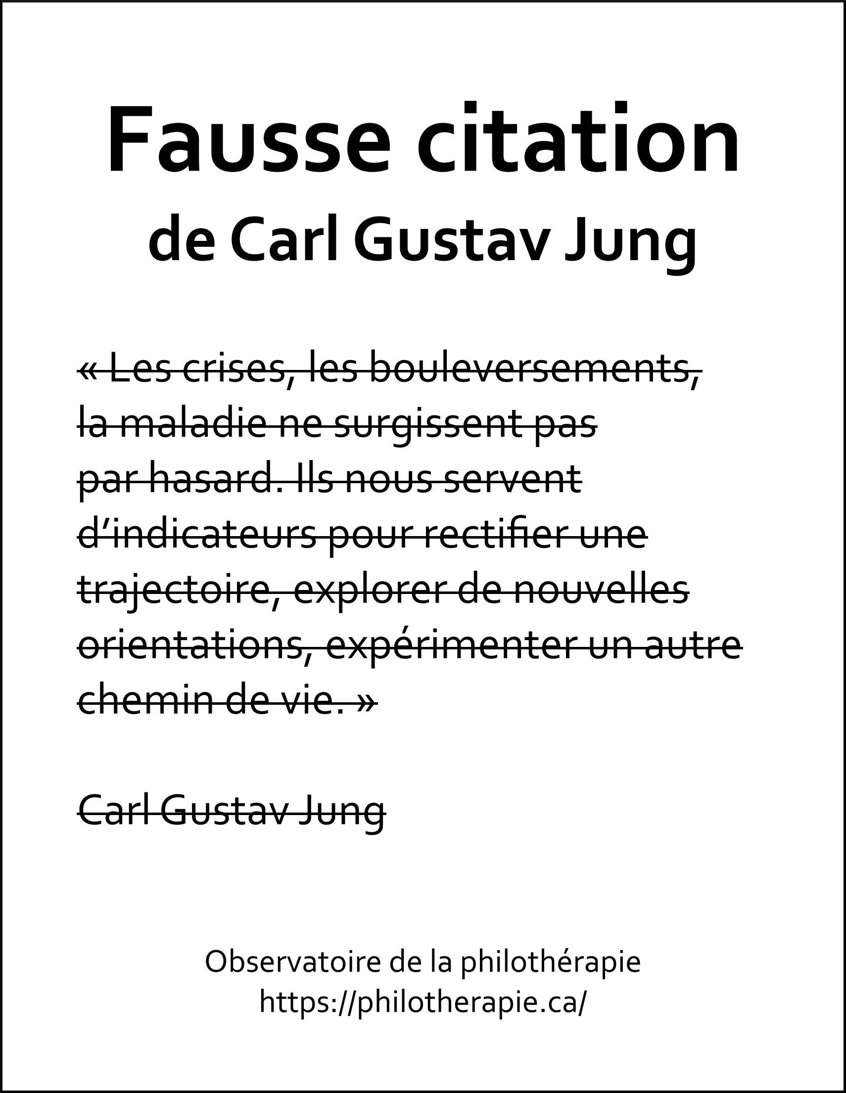 Je suis désolé mais il n’a pas été possible de trouver l’original allemand de la citation que vous recherchez. Franchement, je ne pense pas qu’il s’agisse vraiment d’une phrase de Jung. Elle semble s’être largement répandue sur les sites internet francophones, mais surtout dans des milieux non académiques, souvent dans le contexte de textes sur la covidopandémie ou sur des sites de coachs/thérapeutes. Et il n’y avait pas une seule référence scientifique (par exemple aux Collected Works de Jungs) à trouver. Je suppose que quelqu’un a attribué cette phrase à Jung et qu’elle s’est ensuite répandue sur l’internet francophone.