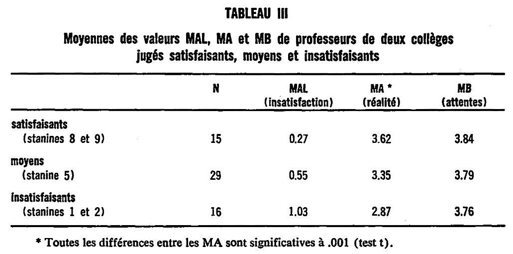 Enfin, l’étude des moyennes d’insatisfaction (MAL) permet de hiérarchiser les besoins de changement. Plus la MAL est élevée, plus le besoin de correction est pressant aux yeux des étudiants. Ce diagnostic personnel est le prélude nécessaire à toute démarche de perfectionnement.