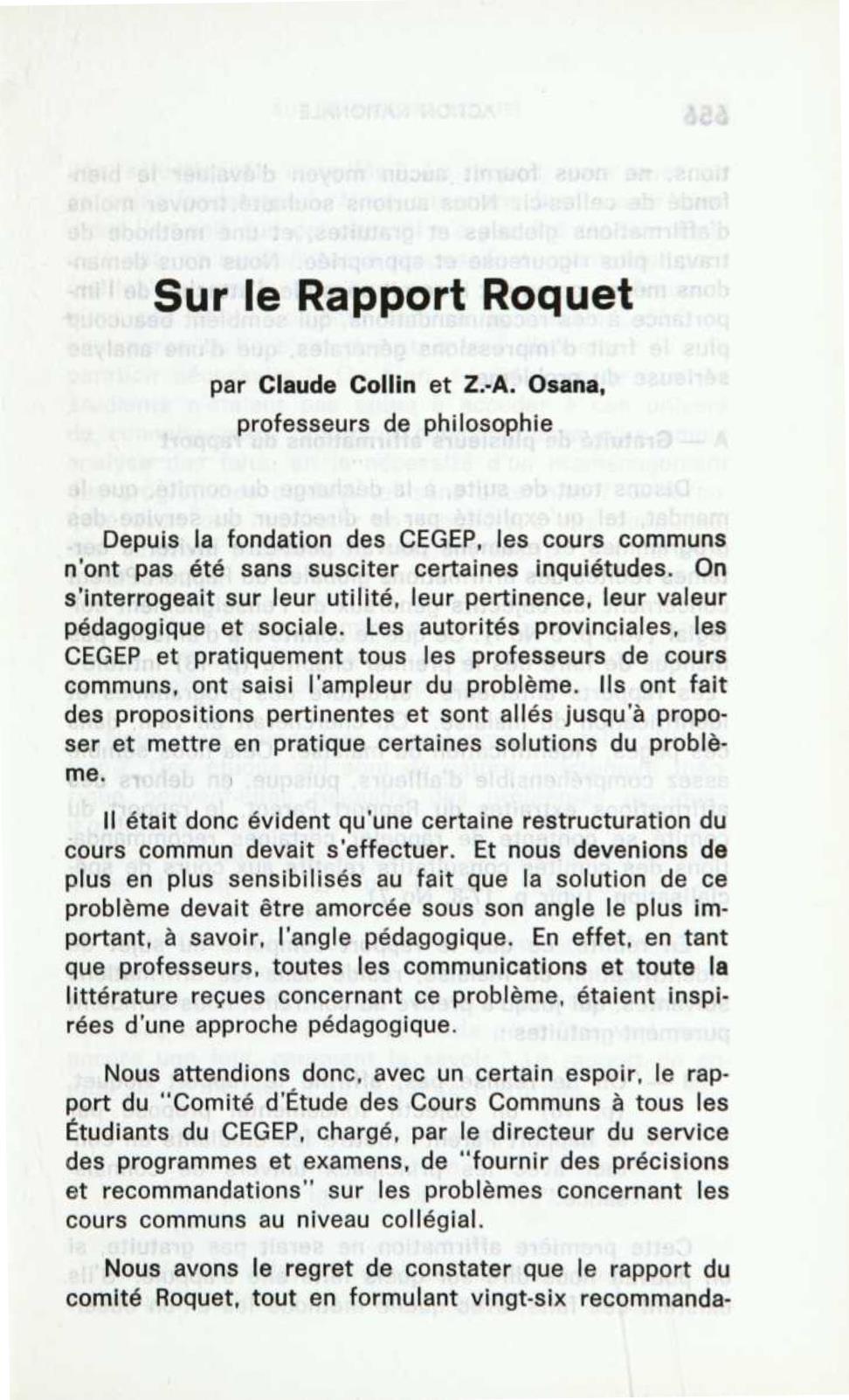 Sur le Rapport Roquet